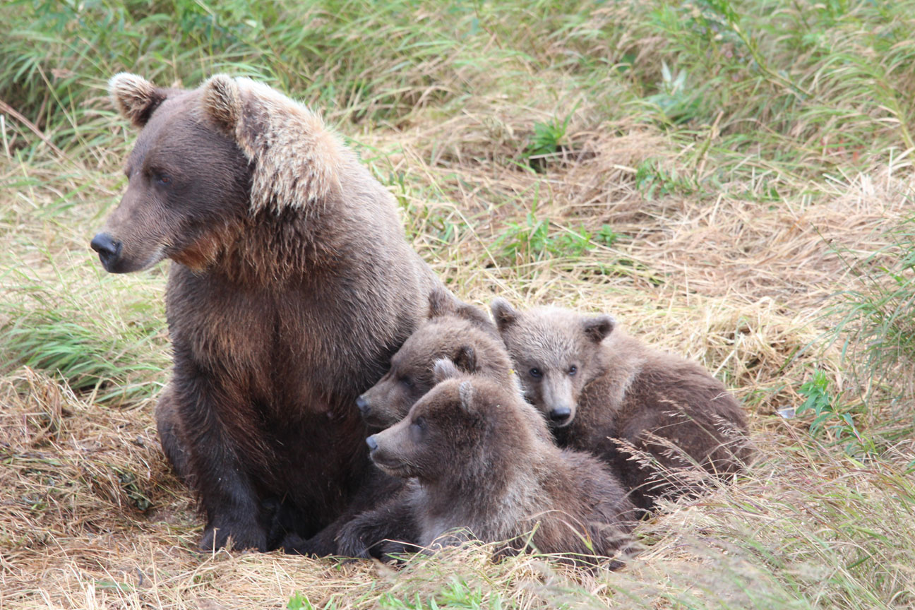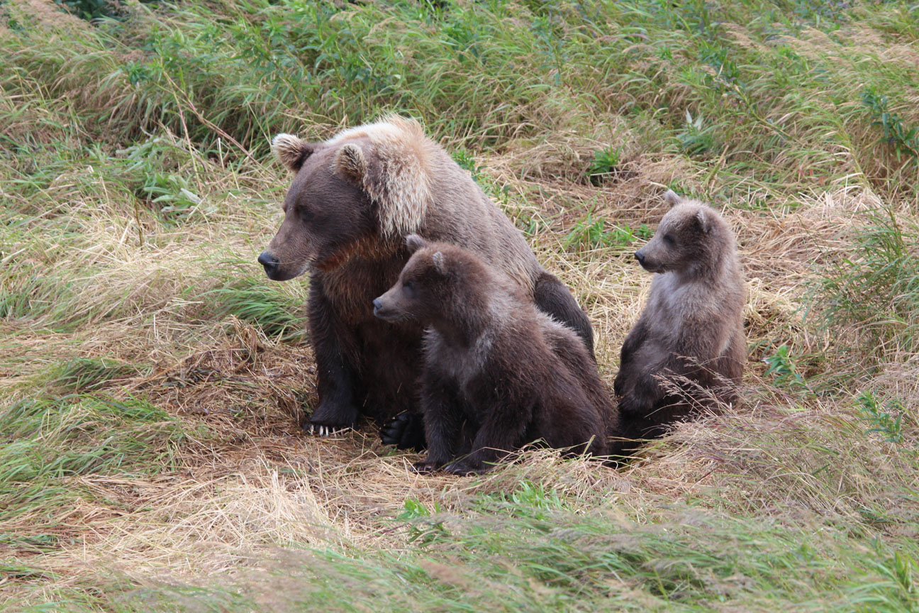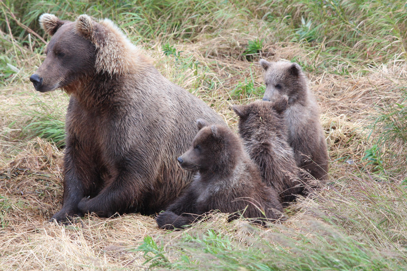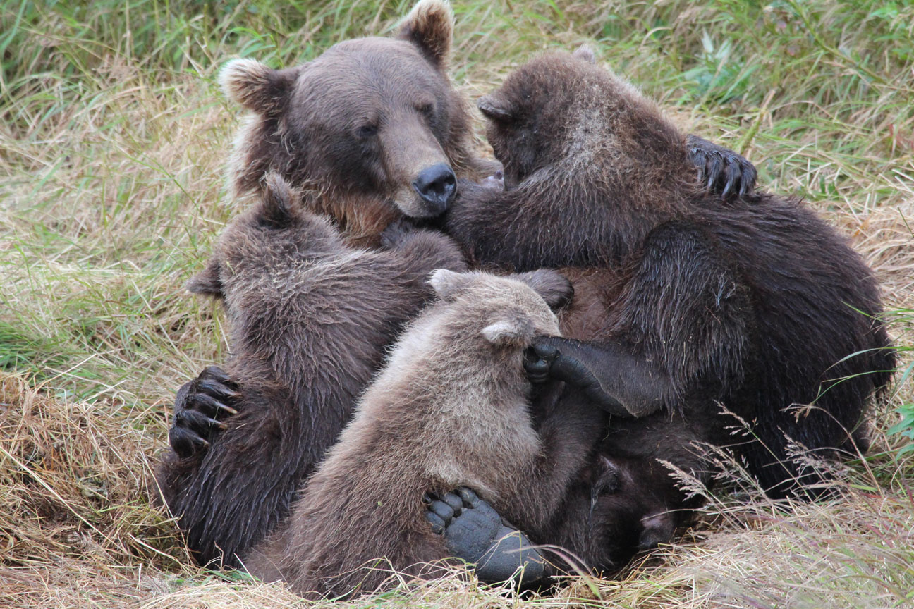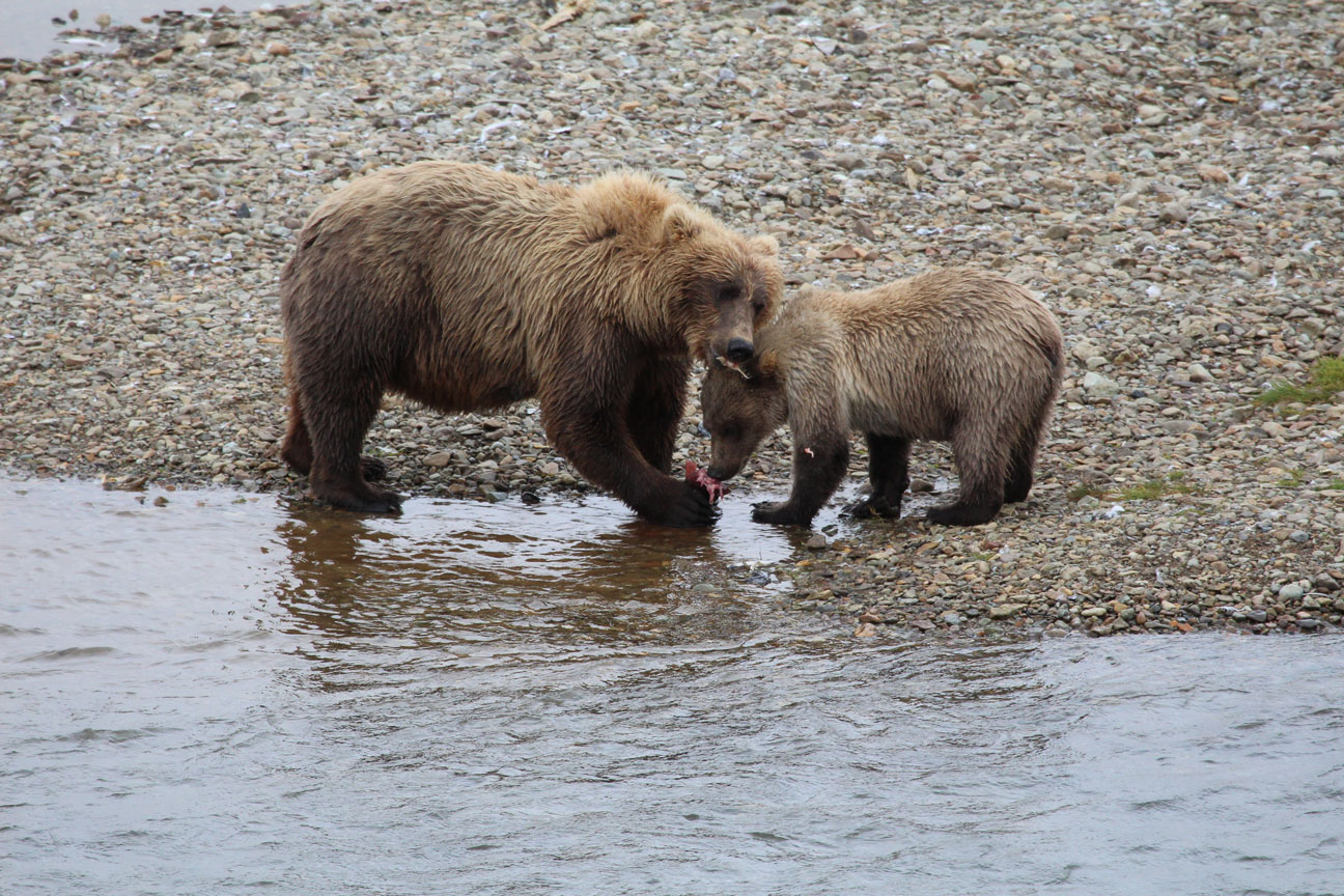 Ich habe gleich jede Menge Aufnahmen davon gemacht. Doch dann sah ich noch zwei Grizzlys kommen. Da sah man auch, dass die zwei nur spielten. Es war eine Bärin mit drei großen Jungen. Alle vier sind dann am Fluss an uns vorbei gezogen und haben miteinander gespielt. Ich denke, dass die drei „Jungen“ sich in den nächsten Tagen oder Wochen getrennt haben und jeder seinen eigenen Weg gegangen ist. Die waren schon soweit………………. Gruß Husky_Heinz